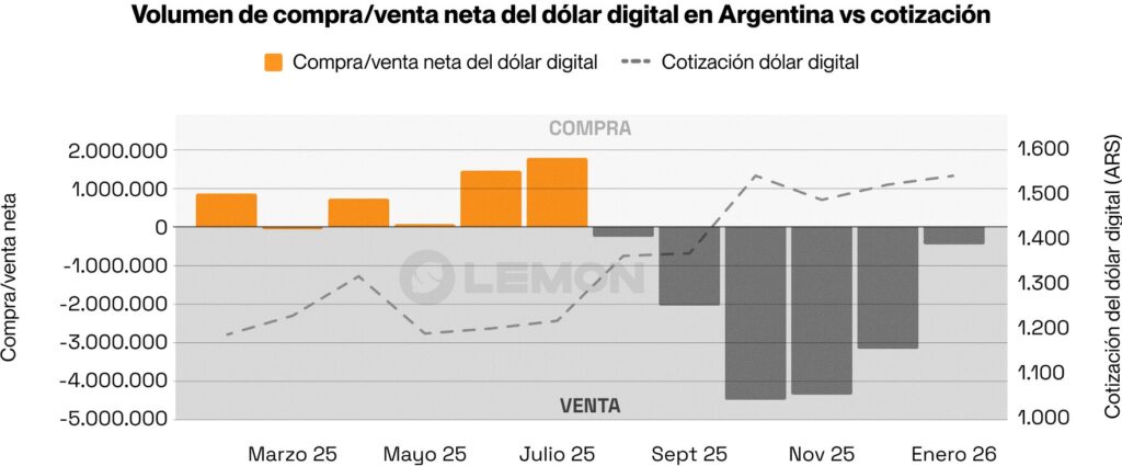 Con cierta previsibilidad cambiaria, y un mercado que opera 24/7, muchos usuarios empezaron a usar el dólar digital menos como ahorro y más como un activo para operar contra el peso: compraron cerca de la banda inferior y vendieron cerca de la banda superior.