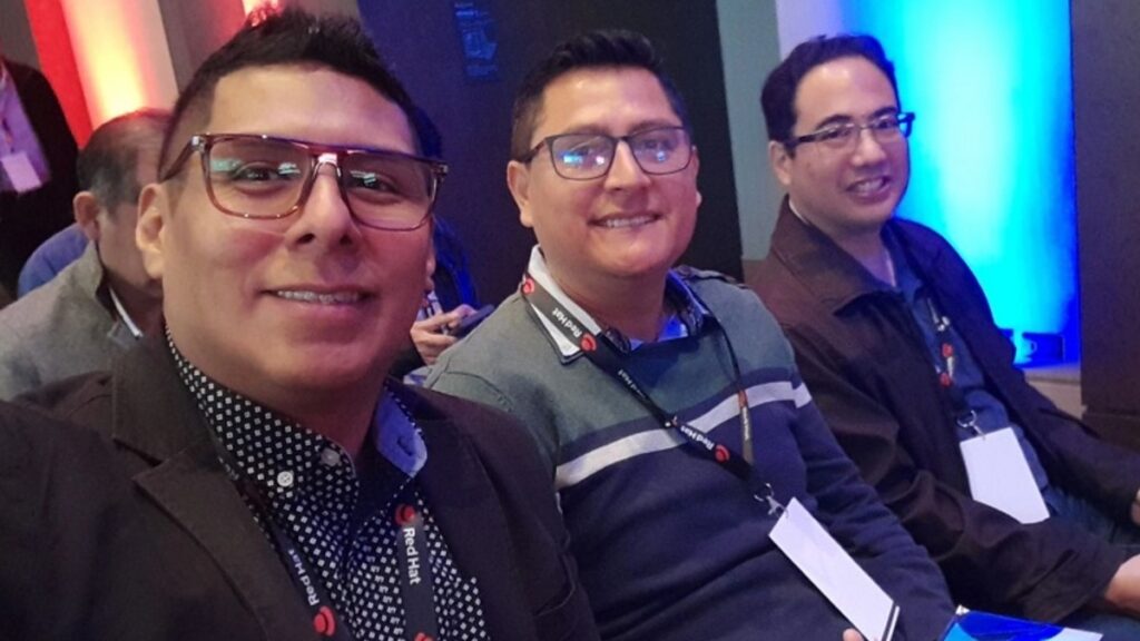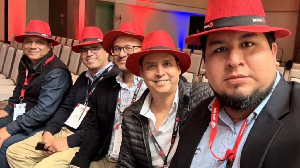 Equipo destacado de RED HAT: Felipe Henriquez, Specialist Automation Solution Architect & Evangelist; Paula Campos Partners & Alliances Marketing Manager; Joaquín Lagos; Administrador Openshift; Eugenia Costantino, Digital Marketing Manager LATAM; Nicolás Moctezuma, Solutions Architect Manager; Rafael Cassiano, Technical Manager; Viviana Loughry, ABM Marketing Manager; Percy De las Casas, RHEL - Cross Segment; Melany Pino, Field Marketing; David Moreira, Regional Cloud; Jean Paul López, Senior Consultant; Juan Carlos Sugajara, Network Architecture; entre otros