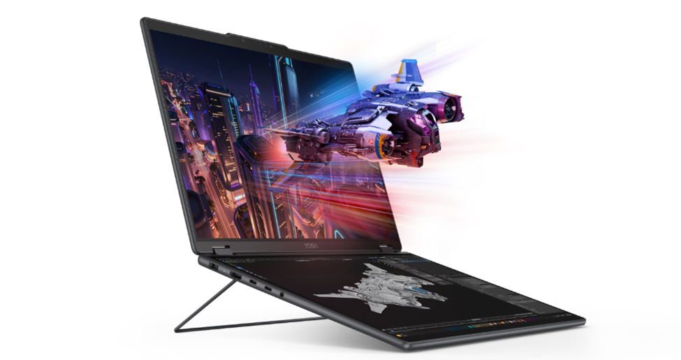 El Yoga Book Pro 3D Concept fue desarrollado en respuesta a estas tendencias en crecimiento, y está diseñado para permitir que los creadores de contenido digital trabajen directamente en tres dimensiones sin necesidad de equipamiento adicional, gracias a su pantalla 3D sin gafas, que permite visualizar profundidad, forma y relaciones espaciales de manera natural en pantalla. El dispositivo incorpora pantallas duales Lenovo PureSight Pro Tandem OLED, que admiten interfaces de usuario más complejas y flujos de trabajo detallados propios de la creación en 3D.La pantalla superior del Yoga Book Pro 3D admite conversión de contenido 2D a 3D impulsada por el propio software de inteligencia artificial de Lenovo, e incluso puede generar, mediante indicaciones del usuario, un entorno interactivo para el objeto convertido, ayudando a los creativos a pasar rápidamente de materiales de referencia a activos 3D editables. Los gestos sin contacto aprovechan la cámara RGB para permitir al usuario hacer zoom, rotar e interactuar de otras formas mediante movimientos de las manos frente al PC.