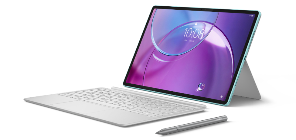 La Idea Tab Pro Gen 2 en Jelly Mint con funda folio, teclado y Lenovo Tab Pen Plus.