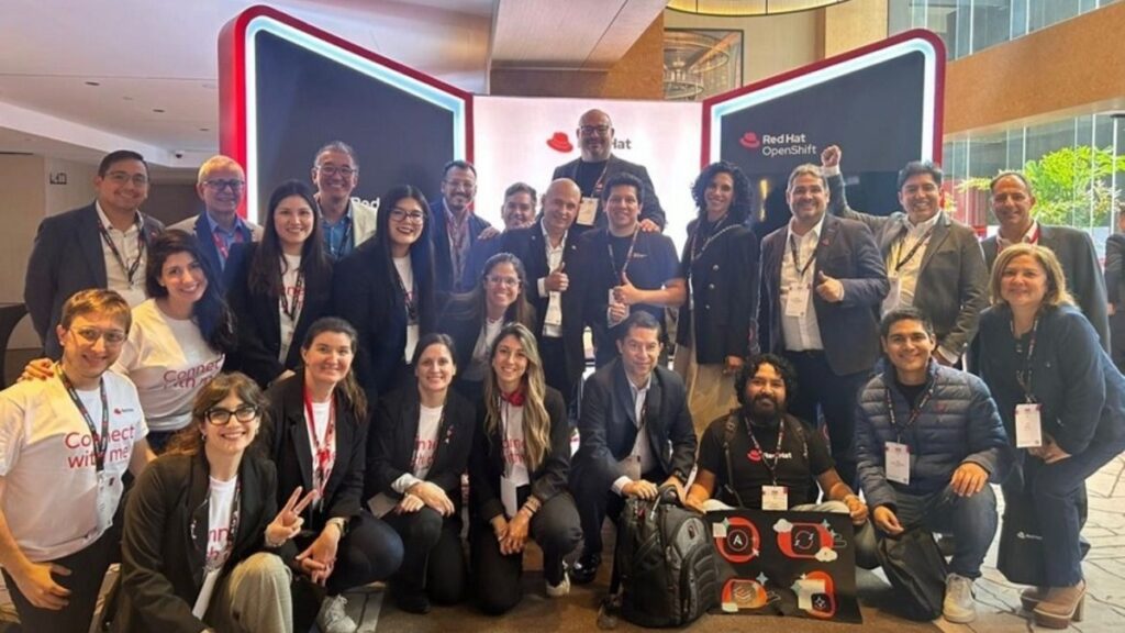 Equipo destacado de RED HAT: Felipe Henriquez, Specialist Automation Solution Architect & Evangelist; Paula Campos Partners & Alliances Marketing Manager; Joaquín Lagos; Administrador Openshift; Eugenia Costantino, Digital Marketing Manager LATAM; Nicolás Moctezuma, Solutions Architect Manager; Rafael Cassiano, Technical Manager; Viviana Loughry, ABM Marketing Manager; Percy De las Casas, RHEL - Cross Segment; Melany Pino, Field Marketing; David Moreira, Regional Cloud; Jean Paul López, Senior Consultant; Juan Carlos Sugajara, Network Architecture; entre otros