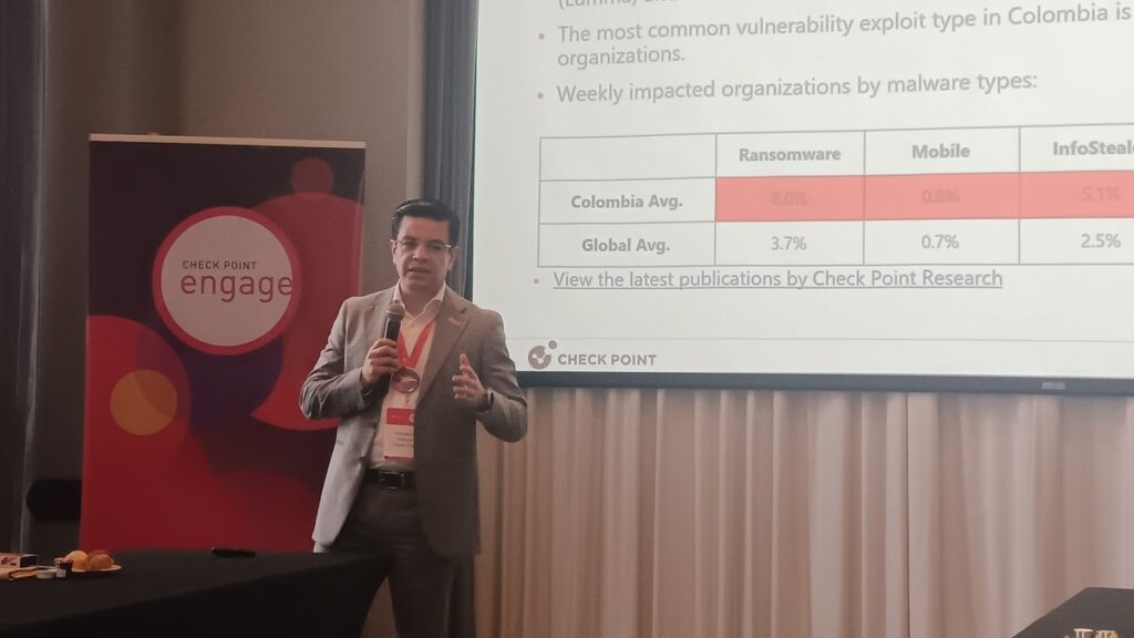 Los datos expuestos por Check Point Research (CPR) durante el evento encendieron las alarmas. América Latina registra una de las tasas más altas de ciberataques del mundo, con 2.716 incidentes semanales por organización en el primer semestre de 2025, cifra que supera en un 39% el promedio global de 1.955. En el caso de Colombia, la situación es aún más crítica: 3.406 ataques por semana, un 74% por encima del promedio mundial.