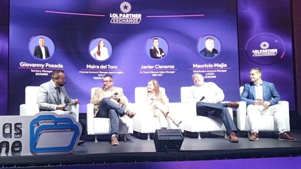 El segundo panel estuvo integrado por Giovanny Posada de Exagrid, Maira del Toro de Trend Micro, Javier Cisneros de Red Hat y Mauricio Mejía de Acronis.