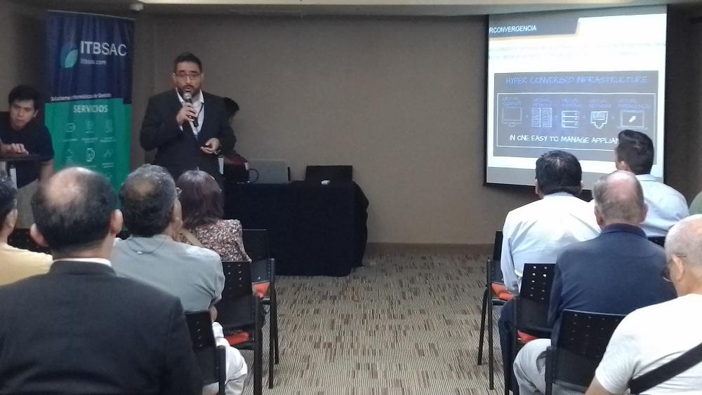 Luego tomó la palabra Carlos Iglesias, Account Manager de IT Business & Support SAC, quien destacó el empleo de las plataformas hiperconvergentes en el desarrollo de la industria señalando que esta es una arquitectura centrada en el software que integra perfectamente recursos informáticos, almacenamiento y virtualización en un único sistema, o como software que se puede instalar en hardware existente.